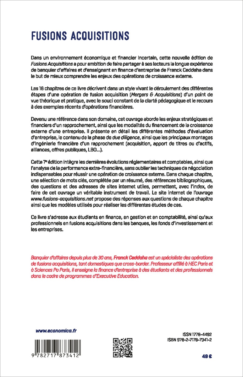 Dans un environnement économique et financier incertain, cette nouvelle édition de Fusions Acquisitions a pour ambition de faire partager à ses lecteurs la longue expérience de banquier d'affaires et d'enseignant en finance d'entreprise de Franck Ceddaha dans le but de mieux comprendre les enjeux des opérations de croissance externe.